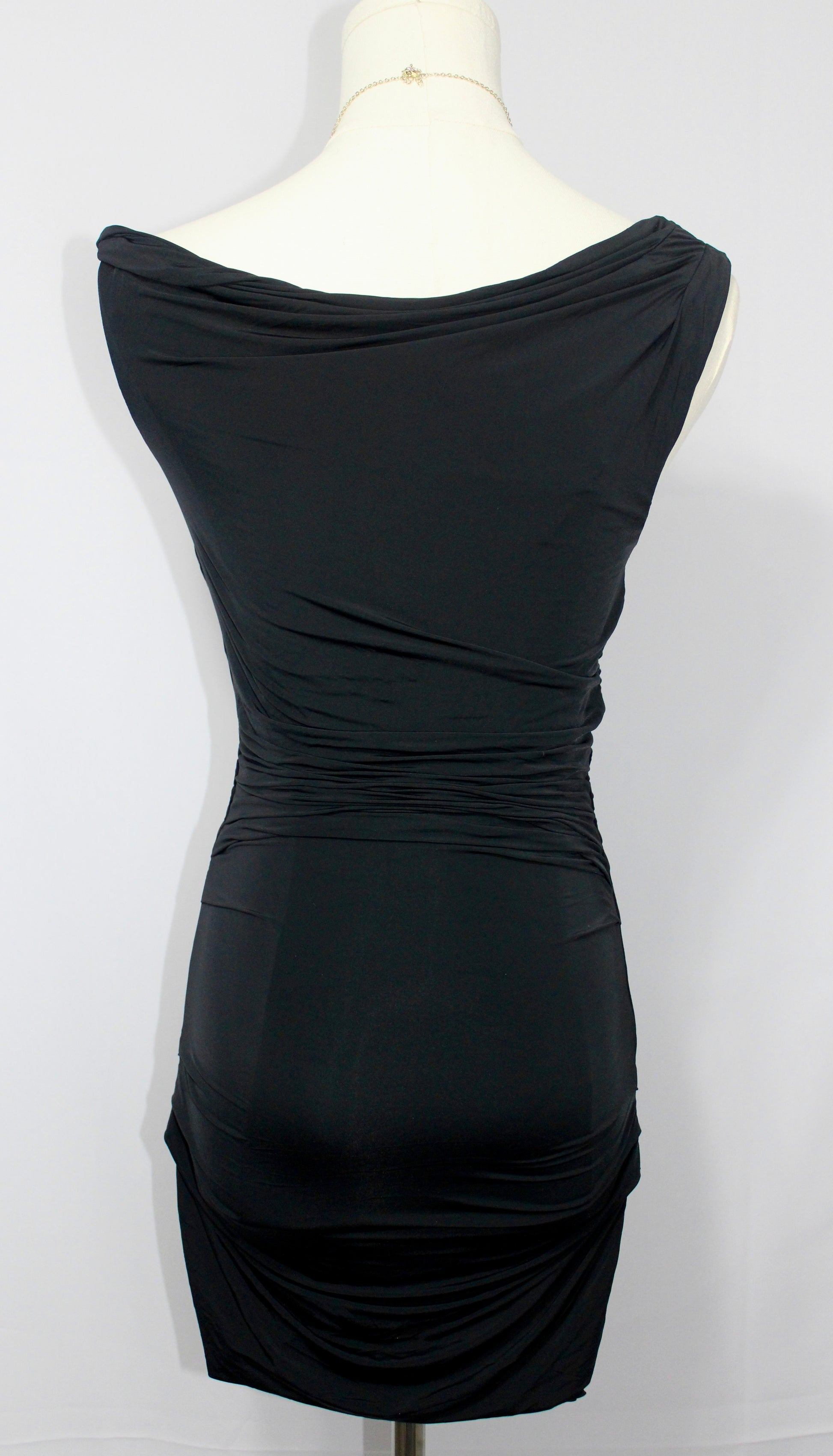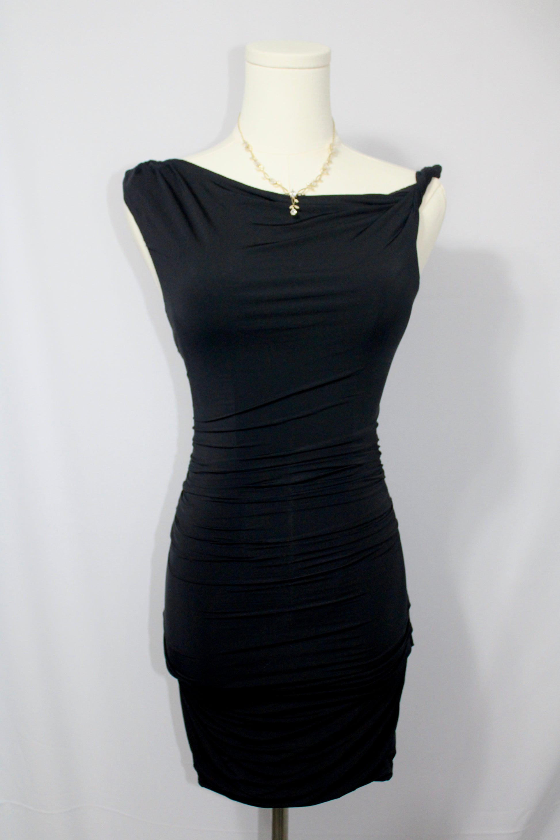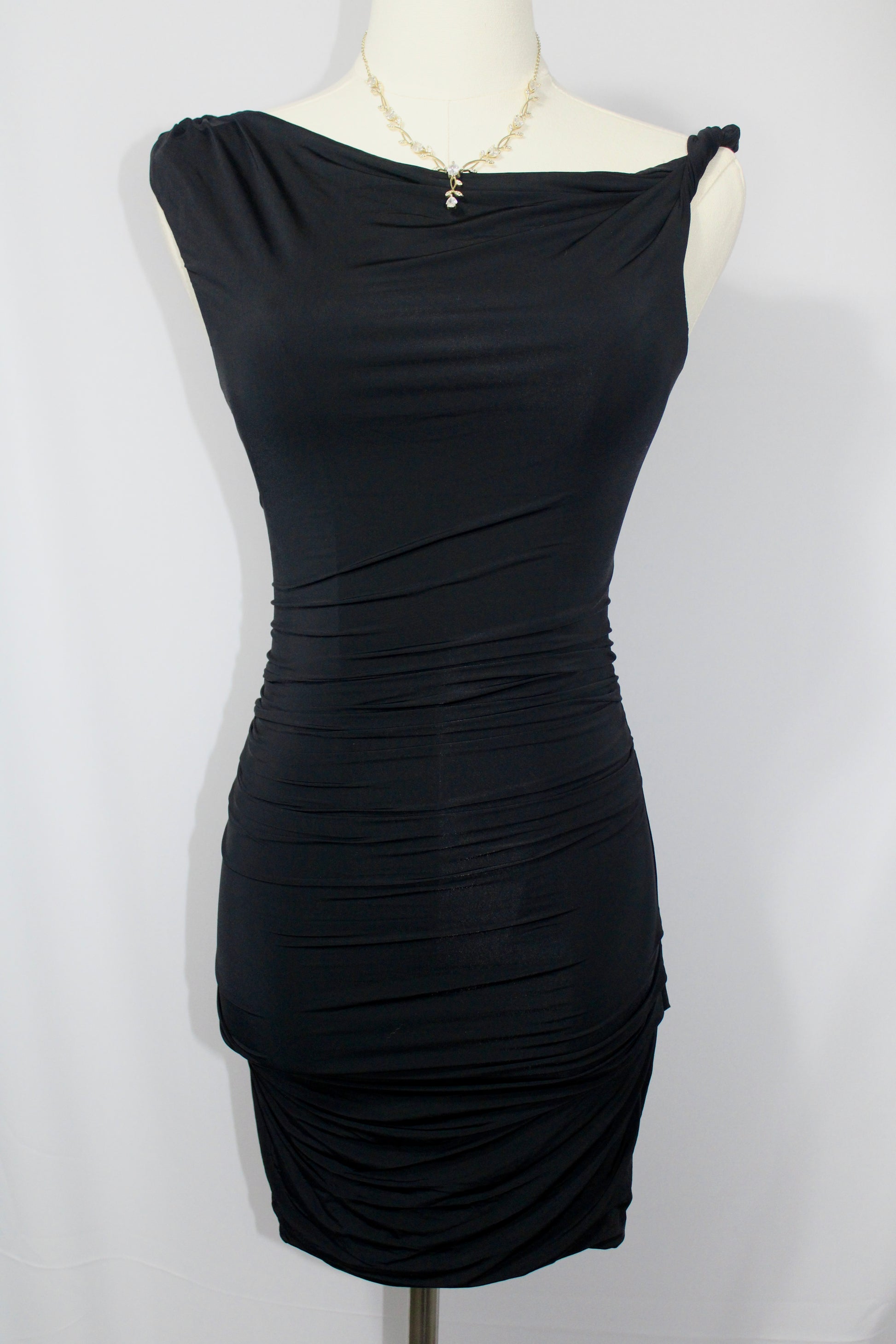 Introducing the Suzzy Black Bodycon Mini Dress, the perfect addition to your wardrobe. Made with a smooth double lined hugging fabric, this black lightweight mini dress offers a flattering and comfortable fit. The asymmetrical neckline and twist strap add a unique touch, while the ruching design at the bodice accentuates your curves. Perfect for any occasion.